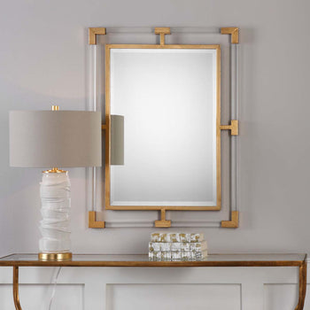 Uttermost's Mirrors Combine Premium Quality Materials With Unique High-style Design.With The Advanced Product Engineering And Packaging Reinforcement, Uttermost Maintains Some Of The Lowest Damage Rates In The Industry. Each Product Is Designed, Manufactured And Packaged With Shipping In Mind. This Mirror Can Certainly Serve As A Focal Point For Any Room. Combining Forged Iron, Finished In A Metallic Gold Leaf, With Suspended, Clear Acrylic, Solid Bars Creating A Modern Feel. Mirror Has A Generous 1 1/4" Bevel. May Be Hung Horizontal Or Vertical.