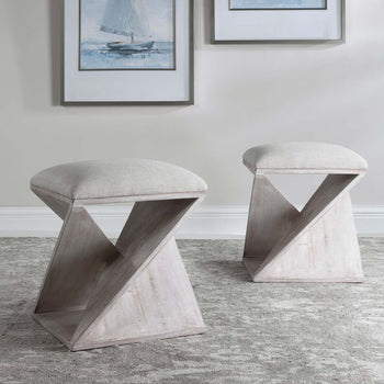 Uttermost's Ottomans Combine Premium Quality Materials With Unique High-style Design.With The Advanced Product Engineering And Packaging Reinforcement, Uttermost Maintains Some Of The Lowest Damage Rates In The Industry. Each Product Is Designed, Manufactured And Packaged With Shipping In Mind. This Coastal Style Ottoman Features A Unique Asymmetrical Base In White Washed, Weathered Fir Wood With A Cushioned, Neutral Linen Top Doubling Its Use As A Seat Or A Footrest.