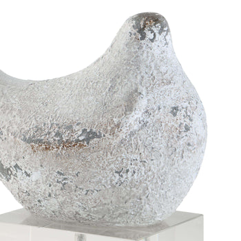This Sculpted Pair Of Bird Figurines Display A Noticeably Textured Silver Finish With Gray And Rust Distressed Details All Atop A Thick Crystal Block Base. Sizes: S-4x8x9, L-4x11x7