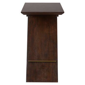 A Thick Stainless Steel Plate In Plated Brushed Brass Pierces Through The Rubber Wood Support In The Breakthrough Accent Table. Finished In A Rich Deep Brown Finish With Warm Undertones.