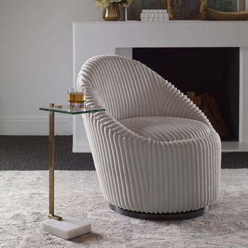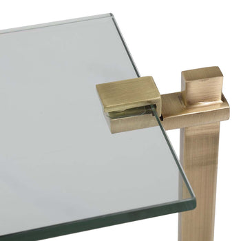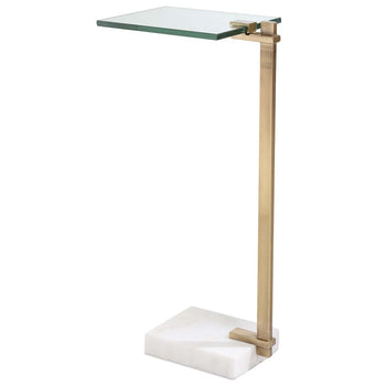 This Perfect Pull-up Table Pairs An Updated Design With Timeless Finishes. The Tempered Glass Top Is Supported By A Brushed Brass Plated Stainless Steel Base Accented By An Elegant White Marble Foot With Natural Veining.