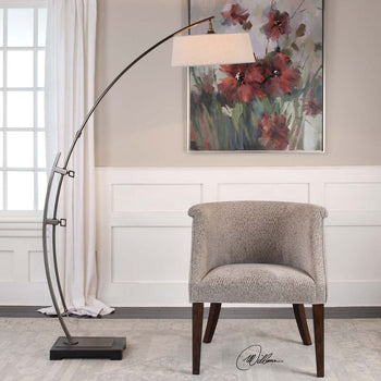 Uttermost's Lamps Combine Premium Quality Materials With Unique High-style Design.With The Advanced Product Engineering And Packaging Reinforcement, Uttermost Maintains Some Of The Lowest Damage Rates In The Industry. Each Product Is Designed, Manufactured And Packaged With Shipping In Mind. This Floor Lamp Features An Adjustable, Large Steel Arc, Finished In A Plated, Dark Oxidized Bronze, Resting On A Matte Black Foot. The Suspended, Tapered Round Shade Is A Light Beige Linen Fabric With Natural Slubbing. The Shade Also Pivots In An Upward Angle.