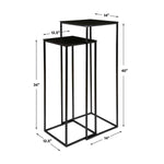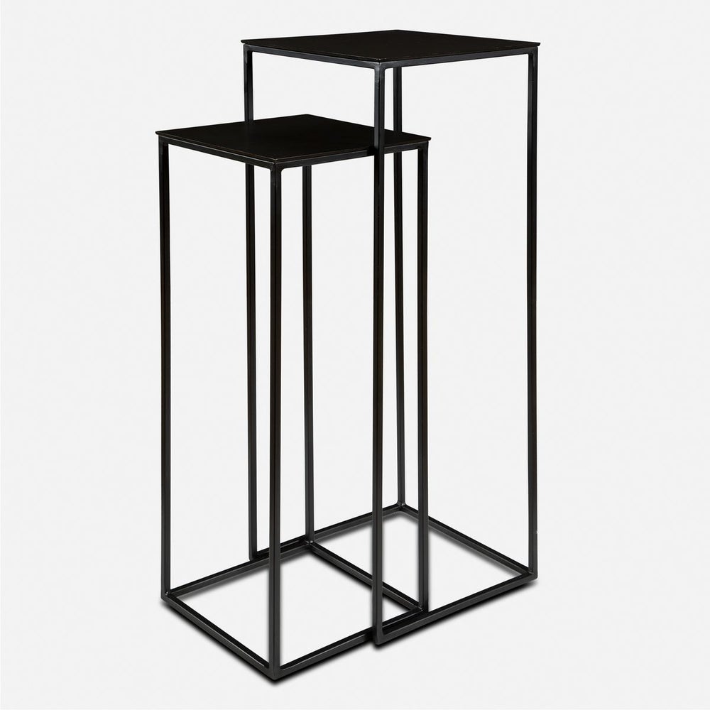 Functional Nesting Pedestals Constructed In An Aged Black Iron, Featuring A Textured Cast Aluminum Slab Top Finished In A Plated Antique Bronze. Sizes: Sm-13x34x13, Lg-14x40x14