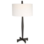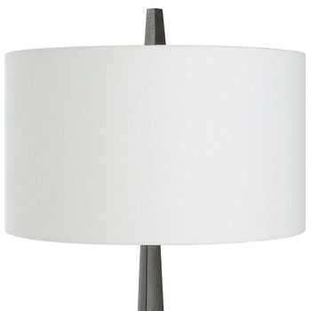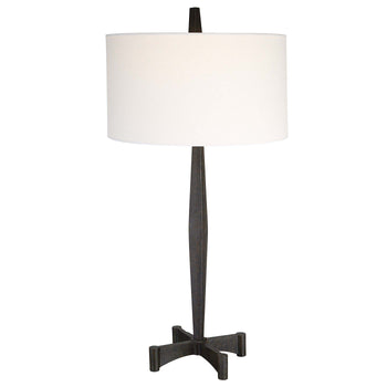 Inspired By Classic Metalwork Designs, This Table Lamp Features A Tapered Base And An Industrial Inspired Foot Finished In Aged Black With Subtle Rust Distressing.