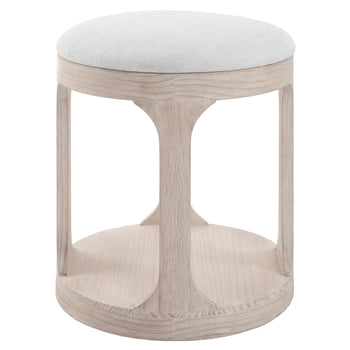 Doubling As A Footrest Or Extra Seating With A Light And Airy Feel In Oak Finished Pine Wood And Topped With Off-white Waffle Weave Polyester Blend Fabric.