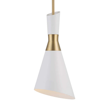 Modern Lines & Shapes In A White & Antique Brass Finish With A Retro Feel Give Us A Classic Looking Mid-century Cone Pendant. Includes 1-60 Watt Max Edison Socket. Supplied With 15' Wire, 3-12 Stems And 1-6 Stem For Adjustable Installation.