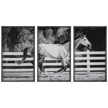 The Perfect Triptych For Equine Lovers, These Exclusive Prints Are Encased In Glass And Surrounded By Wooden Frames In A Black Finish With Ivory Ceruse Detailing.