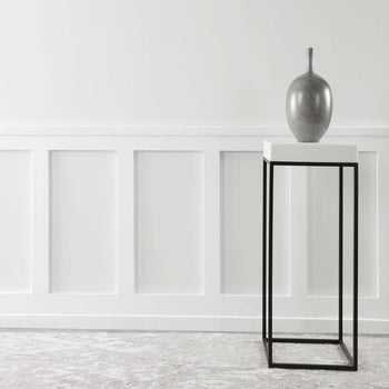 Uttermost's Accent Furniture Combines Premium Quality Materials With Unique High-style Design.With The Advanced Product Engineering And Packaging Reinforcement, Uttermost Maintains Some Of The Lowest Damage Rates In The Industry. Each Product Is Designed, Manufactured And Packaged With Shipping In Mind. This Modern Plant Stand Combines A White Marble Look, Atop A Simple Steel Base Finished In Aged Black.