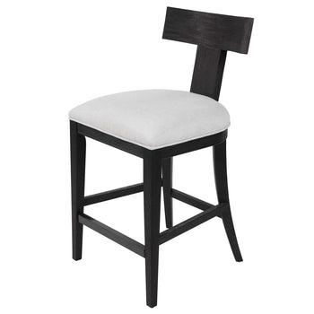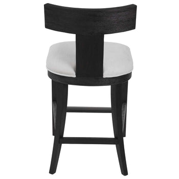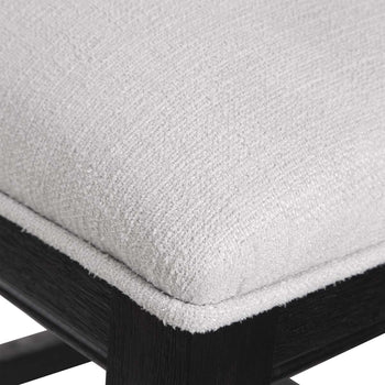 This Modern Take On A Klismos Design Features A Curved Rubber Wood Frame That Has Been Wire Brushed And Rubbed In A Charcoal Black Stain, Paired With A White Slubbed Performance Fabric Cushion. Seat Height Is 26.