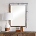 A Nod To Traditional Industrial Style, This Mirror Features A Handcrafted Solid Iron Frame Finished In A Noticeably Distressed Deep Ebony Finish. The Piece Has A Generous 1 1/4 Bevel And May Be Hung Horizontal Or Vertical.