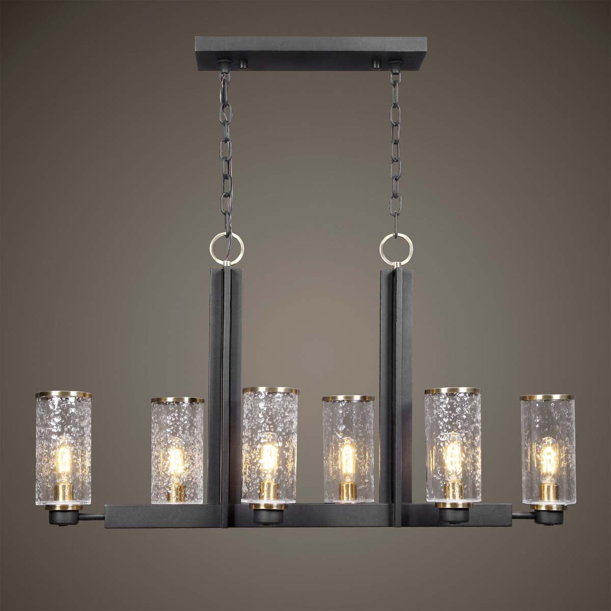 Uttermost's Light Fixtures Combine Premium Quality Materials With Unique High-style Design.With The Advanced Product Engineering And Packaging Reinforcement, Uttermost Maintains Some Of The Lowest Damage Rates In The Industry. Each Product Is Designed, Manufactured And Packaged With Shipping In Mind. Refined Industrial With Clean Lines On Our 6 Lt.Island Features A Sanded Black Finish On The I-beam Style Frame With Refined Antique Brass Accents And Clear Meteor Shower Glass Shades. With 6-60 Watt Max Edison Sockets Also Includes 7' Of Chain And 20' Of Wire For Adjustable Installation.