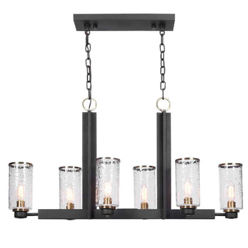 Uttermost's Light Fixtures Combine Premium Quality Materials With Unique High-style Design.With The Advanced Product Engineering And Packaging Reinforcement, Uttermost Maintains Some Of The Lowest Damage Rates In The Industry. Each Product Is Designed, Manufactured And Packaged With Shipping In Mind. Refined Industrial With Clean Lines On Our 6 Lt.Island Features A Sanded Black Finish On The I-beam Style Frame With Refined Antique Brass Accents And Clear Meteor Shower Glass Shades. With 6-60 Watt Max Edison Sockets Also Includes 7' Of Chain And 20' Of Wire For Adjustable Installation.