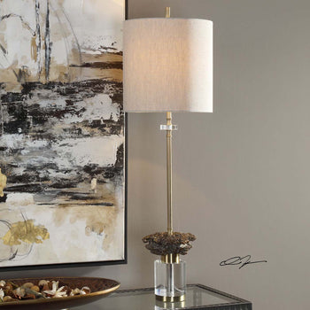 Uttermost's Lamps Combine Premium Quality Materials With Unique High-style Design.With The Advanced Product Engineering And Packaging Reinforcement, Uttermost Maintains Some Of The Lowest Damage Rates In The Industry. Each Product Is Designed, Manufactured And Packaged With Shipping In Mind. This Very Unique Lamp Base Consists Of A Delicate, Resin-treated Casting Of A Barn Wasp's Nest Finished In A Heavily Antiqued Metallic Gold, Set On A Solid Crystal Base, Accented With Brushed Brass Plated Details. The Round Hardback Drum Shade Is An Oatmeal Linen Fabric With Natural Slubbing.