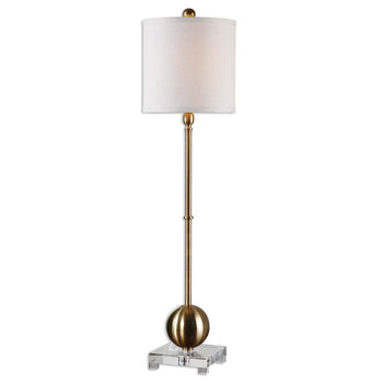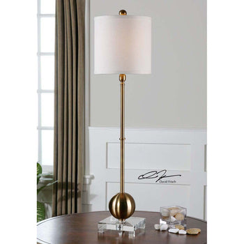 Uttermost's Lamps Combine Premium Quality Materials With Unique High-style Design.With The Advanced Product Engineering And Packaging Reinforcement, Uttermost Maintains Some Of The Lowest Damage Rates In The Industry. Each Product Is Designed, Manufactured And Packaged With Shipping In Mind. This Versatile Buffet Lamp Features Smooth Iron Details Finished In A Plated Brushed Brass, Accented With A Thick Crystal Base. The Round Hardback Drum Shade Is An Off-white Linen Fabric.