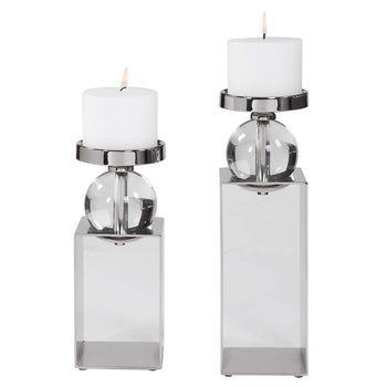 Uttermost's Accessories Combine Premium Quality Materials With Unique High-style Design.With The Advanced Product Engineering And Packaging Reinforcement, Uttermost Maintains Some Of The Lowest Damage Rates In The Industry. Each Product Is Designed, Manufactured And Packaged With Shipping In Mind. Set Of Two Candleholders Featuring An Open Steel Frame Finished In Polished Nickel With Crystal Accents. Two, 4"x 3" Distressed White Candles Included.