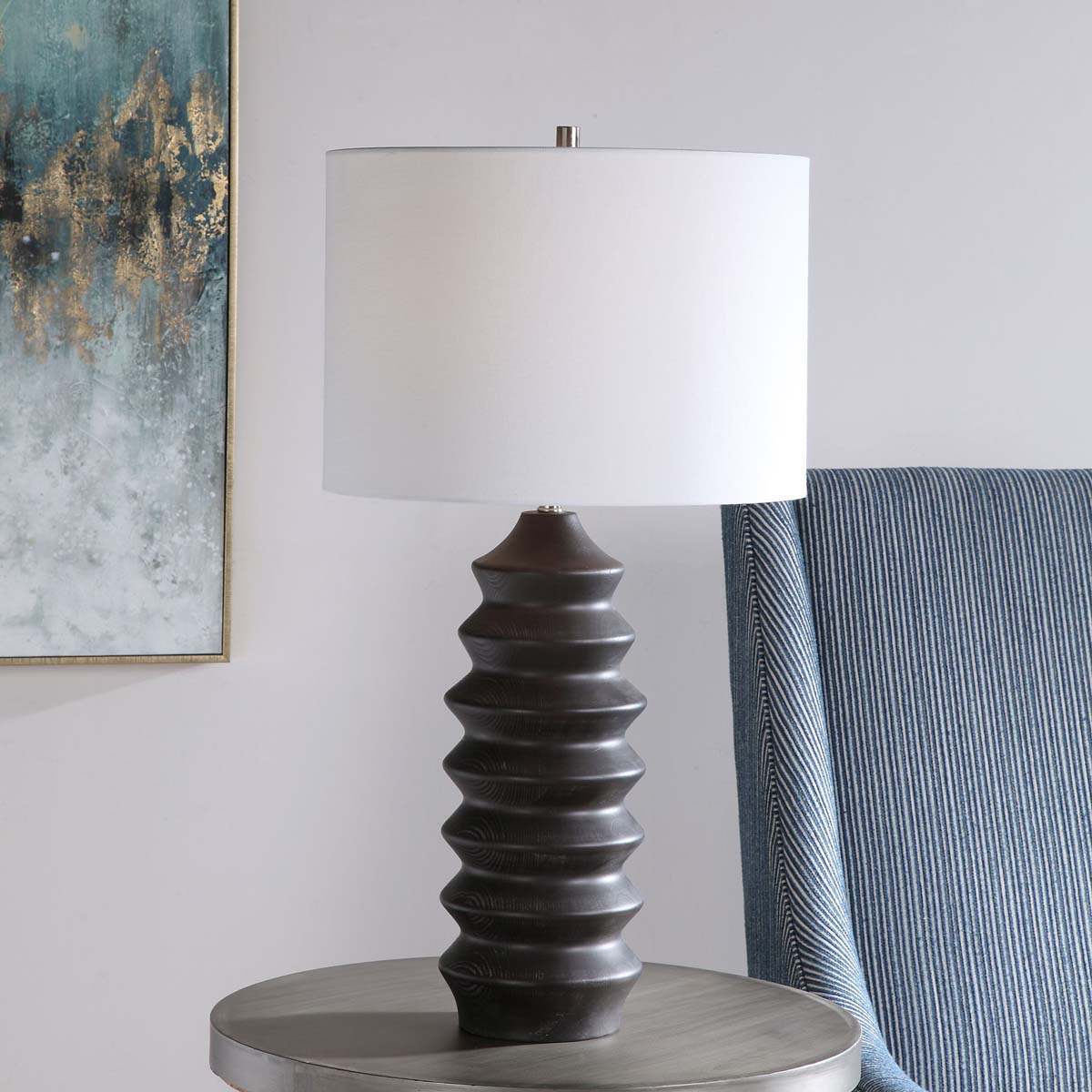 Uttermost's Lamps Combine Premium Quality Materials With Unique High-style Design.With The Advanced Product Engineering And Packaging Reinforcement, Uttermost Maintains Some Of The Lowest Damage Rates In The Industry. Each Product Is Designed, Manufactured And Packaged With Shipping In Mind. Showcasing A Modern Lodge Style, This Table Lamp Features A Carved Wood Base Finished In A Rustic Black Stain Exposing Subtle Wood Grain. The Lamp Is Paired With A Round Hardback Drum Shade In A White Linen Fabric.