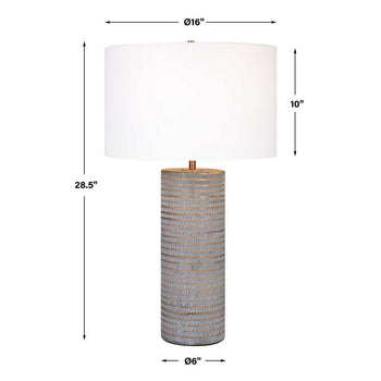 This Ceramic Table Lamp Showcases A Rustic Chiseled Texture With Frosted Pewter Gray Undertones And Organic Carved Accents In Light Sepia Tones. Iron Details Are Finished In Antique Brass.