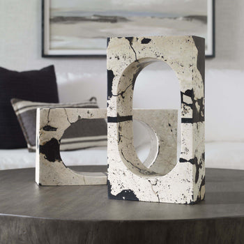 Inspired By The Clean Lines And Bold Feel Of Modern Art, This Sculpture Is Handcrafted From Natural White Coral Stone With Black Accents. Sold Individually.