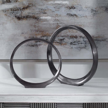 Aluminum Accessories Showcase A Contemporary Look With Streamlined Curves Finished In Black Nickel. Sizes: S-12x11x2, L-14x14x2