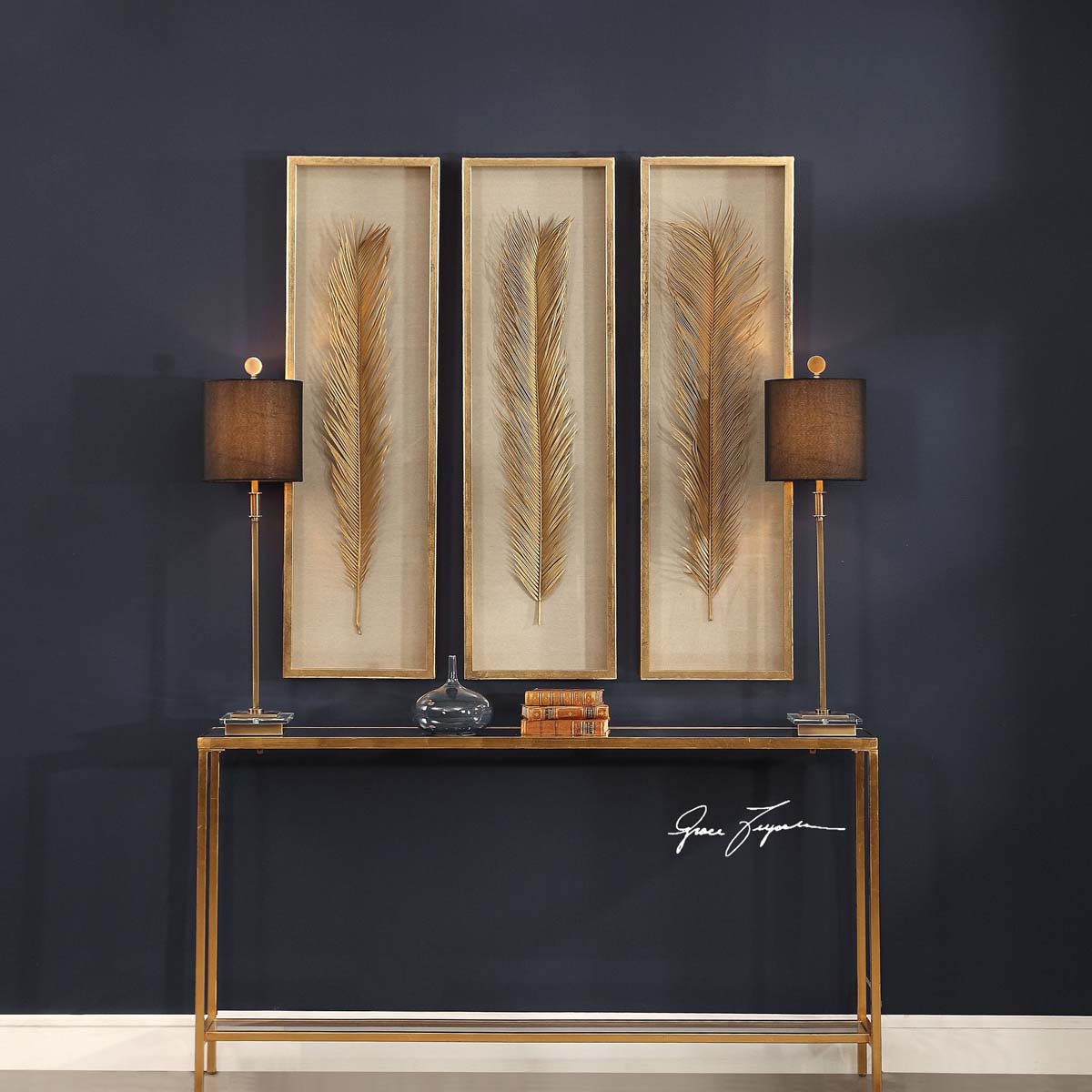 Uttermost's Wall Decor Combines Premium Quality Materials With Unique High-style Design.With The Advanced Product Engineering And Packaging Reinforcement, Uttermost Maintains Some Of The Lowest Damage Rates In The Industry. Each Product Is Designed, Manufactured And Packaged With Shipping In Mind. This Set Of 3 Shadow Box Art Features Gold Finished Sago Palm Leaf Replicas, Set On A Neutral Linen Background With Hand Applied Gold Leaf Frames.