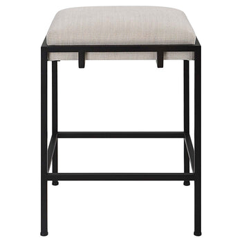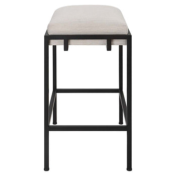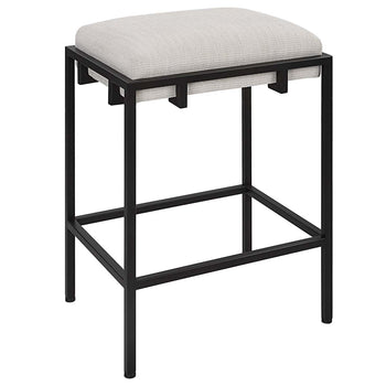 A Classic And Sophisticated Color Combination, This Counter Stool Features A Sleek Matte Black Iron Frame And Is Paired With A Plush Upholstered Seat In A Crisp White Waffle Textured Polyester. Seat Height Is 27.