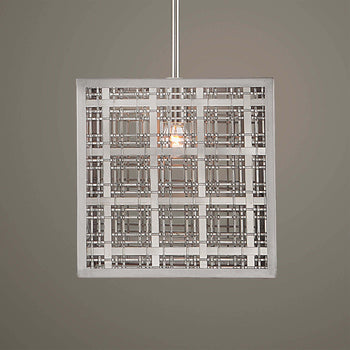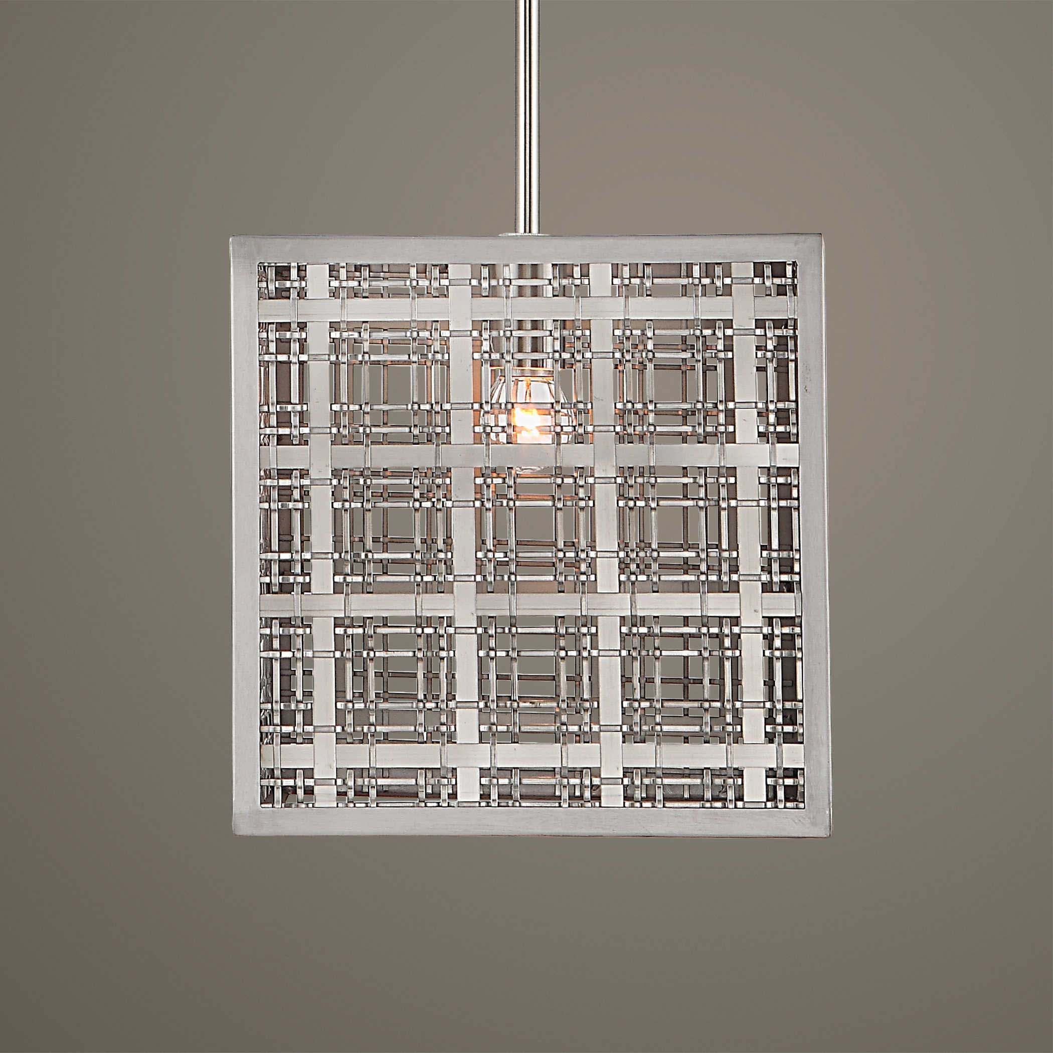 Plaid Patterned Woven Satin Nickel Strips Give Us An Updated Traditional Feel For This Classic Square Pendant. Includes 1-60 Watt Max Edison Socket. Supplied With 15' Wire, 3-12 Stems And 1-6 Stems For Adjustable Installation.