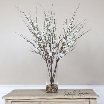 Uttermost's Centerpieces Combine Premium Quality Materials With Unique High-style Design.With The Advanced Product Engineering And Packaging Reinforcement, Uttermost Maintains Some Of The Lowest Damage Rates In The Industry. Each Product Is Designed, Manufactured And Packaged With Shipping In Mind. Effortlessly Arranged As If Freshly Harvested, These Quince Branches Exemplify The True Characteristics Of Live Blooms. Varying In Stages Of Openness, Cream Buds Are Accented By Natural Rocks In A Clear Glass Vase.