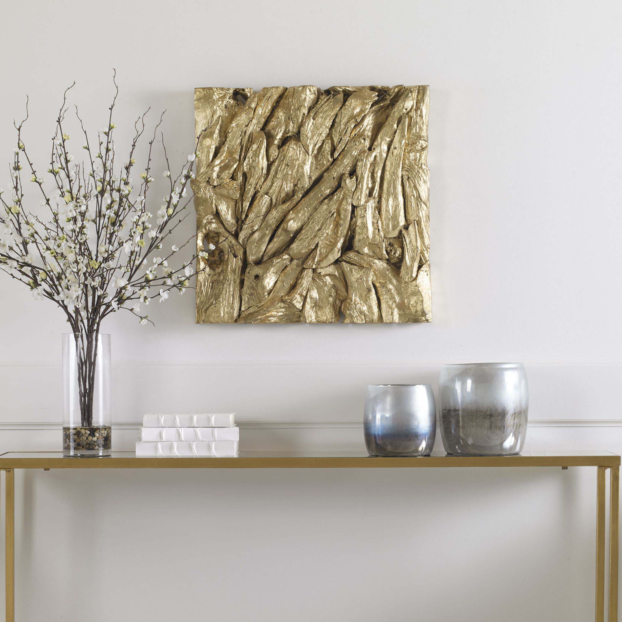 Artfully Constructed From Teak Branches, This Wood Wall Decor Displays A Glam Look In A Rich Gold Leaf Finish.