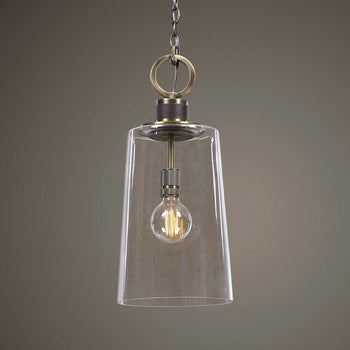 Uttermost's Light Fixtures Combine Premium Quality Materials With Unique High-style Design.With The Advanced Product Engineering And Packaging Reinforcement, Uttermost Maintains Some Of The Lowest Damage Rates In The Industry. Each Product Is Designed, Manufactured And Packaged With Shipping In Mind. Refined Industrial Looks Give This 1 Lt Mini Pendant Its Design Roots, Then With An Antique Brass Finish, It's Dressed Up With A Textured Brown Leather Band At The Top. 1-100 Watt Max, Edison Socket. Includes 12' Wire & 5' Chain For Adjustable Installation.