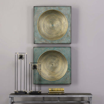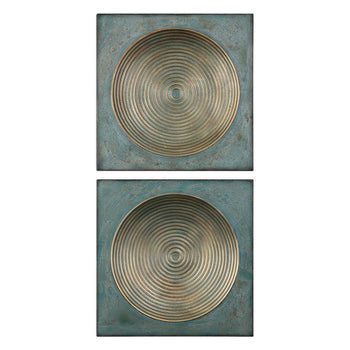 Uttermost's Wall Art Combines Premium Quality Materials With Unique High-style Design.With The Advanced Product Engineering And Packaging Reinforcement, Uttermost Maintains Some Of The Lowest Damage Rates In The Industry. Each Product Is Designed, Manufactured And Packaged With Shipping In Mind. Aged Iron Squares Featuring A Ribbed Concave Center In Antique Gold, Washed With A Heavy Patina Glaze Revealing Ivory Undertones.