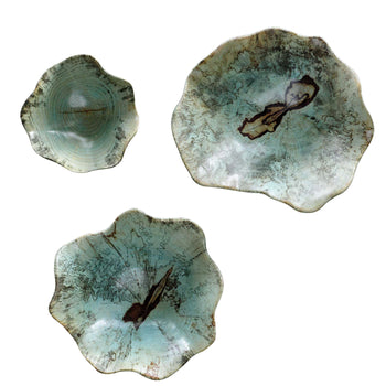 This Set Of Three Wood Wall Art Features Naturally Spalted Tamarind Wood, Finished In A Soft Blue-green. Because Each Is Individually Handcrafted, Sizes May Vary. Cracks And Variations In The Grain Are Natural To This Type Of Wood. Sizes: Sm-10x10x5, Med-15x15x7, Lg-16x16x7
