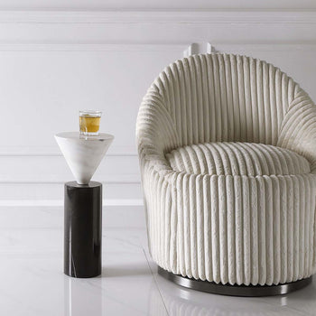 A Juxtaposition Of Modern Shapes, This Stylish Drink Table Features Solid Marble In Luxurious Black And White. True To The Nature Of Natural Materials, Each Piece Will Have Unique Marbling And Veining Throughout.