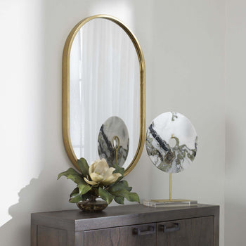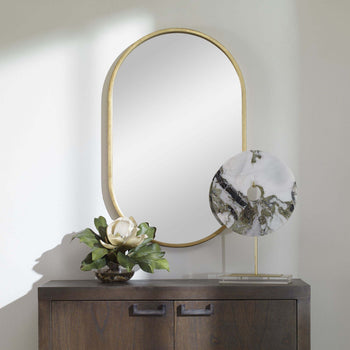 This Iron Oval Features A Lightly Antiqued Gold Leaf Finish And Linear Details. May Be Hung Horizontal Or Vertical.