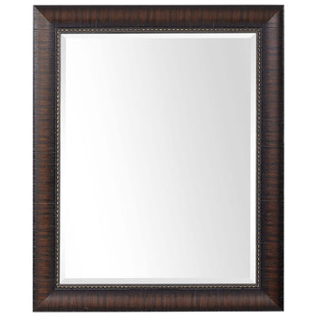 This Rectangular Mirror Features A Heavily Burnished Wood Look With Rich Mahogany Undertones, Faux Exposed Wood Grain And A Beaded Inner Liner. The Piece Has A 1 Bevel And May Be Hung Horizontal Or Vertical.