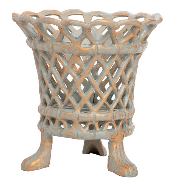 The Enchanted Home Verde Green & Gold Lattice Footed Planter