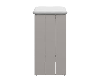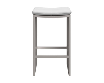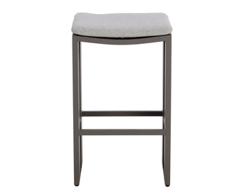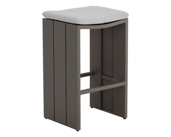 With a modern and streamlined design, the Verin Barstool is a great addition to any outdoor space. This backless barstool is crafted with a warm grey powder-coated aluminum base. Features a removeable seat cushion upholstered in our gracebay light grey fabric.
