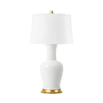Both functional and decorative, the Acacia Lamp achieves the effect of a worldly piece of pottery, recalling the classic Greek amphora, while bringing light to a living room or bedroom. It's crafted in glazed porcelain with a high-gloss finish, allowing its color to truly shine, especially when contrasted with its accents of gold leaf on the base and finial. Pair it with one of our classic shades to upgrade a modern study, bedroom, or family room. It's definitely worth cozying up next to. Please note that the shade is sold separately. 8W x 8D x 30H