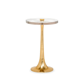 The Antonia Side Table is the embodiment of retro glamour, like something you'd find one of the great stars of Old Hollywood leaning over with a cocktail, whispering in a companion's ear. Such a scene is so evoked by its dazzling design, perfected by hand by our skilled artisans. From its polished, hand-cast brass base to its thick yet delicate-looking glass disc top, this piece effortlessly adds a bit of brilliance next to a sofa or lounge chair, while doubling as a functional feature wherever you need some extra surface space. 14W x 14D x 22.5H