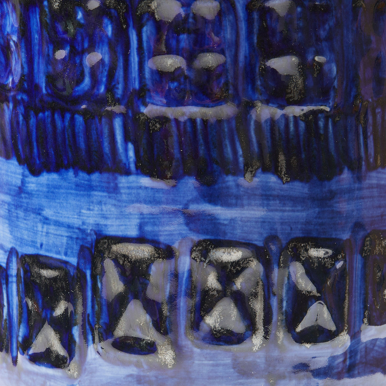 Crafted from exquisite porcelain, the Aristide Lamp showcases a captivating relief design with an uneven glaze application, creating a mesmerizing interplay of opulent blue shades. Inspired by 1950s modern expressionism, its abstract pattern fuses innovation with sophistication. Resting on a gold leaf base, this lamp effortlessly elevates any room - from the cozy charm of a living room to a statement piece in your office or a stylish addition to your dining sideboard, sparking conversations with its artistic elegance. 8W x 8D x 28.5H