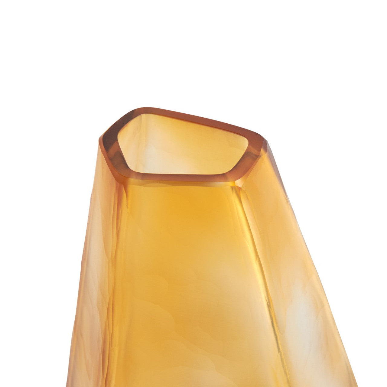 From its raw geometric shape to its vivid, gemlike color, the Asscher Vase is as striking as a rare and precious crystal. The fact that It's been crafted by hand and not by nature is a true testament to the skills of our artisans. Two layers of glass, one clear and one pigmented, come together to create the rich, natural-looking gradients of amber. A single stem flower provides the perfect finishing touch to this uniquely elegant accent piece. 7W x 7D x 14.5H