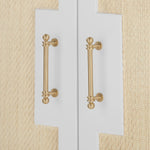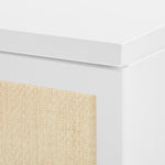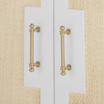 Modern minimalism meets Eastern romance in our Astor Collection, inspired by the elegance of Chinoiserie design. The Astor Cabinet, available in a rich black or white lacquer, features panels of finely-woven grasscloth which add a natural element to any bedroom, study or living room with worldly ambitions. Two doors finished with custom brushed brass pulls open up to reveal a veneered interior with adjustable shelves to store anything from home bar essentials to dinnerware. Undeniably a chic and versatile piece to enhance your living room, dining room or study. 32W x 12D x 38.5H