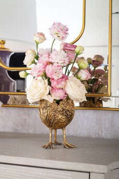 Show off your whimsy with the Beatrice Bowl. This petite bauble makes for the ideal decorative bowl, though, with a wink of personality, it can also be used to hold jewelry, keys, or even flowers. Cast using the "lost wax" method employed by craftsmen for hundreds of years, the Beatrice carries an air of mystery and a sense of timelessness that harmonizes with its fanciful mythological form. Who can possibly resist its playful whimsy and surrealist charm? Notice how the legs have been made to resemble those of a fantastical feathered creature. 5.5W x 5.5D x 6.5H