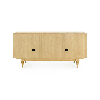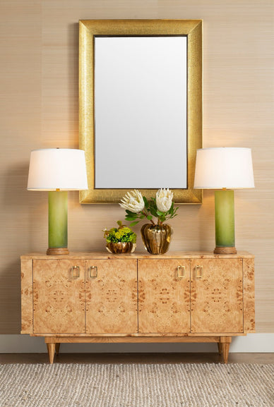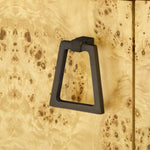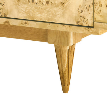 There's a certain sense of nostalgia imbued in our stunning Beau 4-Door Cabinet. From its retro proportions to its kaleidoscopic display of burl wood, the piece feels plucked out of a home in the Hollywood Hills, circa the 1970s. And though that speaks to its bohemian, organic glamour, the Beau is distinctly modern in its craftsmanship. A fine coat of veneer gives the light wood a glossy, fresh finish, with a veneered oak interior featuring two adjustable shelves for storage and organization. The four doors open gently on European hinges and can be customized with your choice of metallic pulls. Boasting back openings for chords, the Beau can even be put to good use in an entertaining area, topped with (or tastefully hiding away) electronics, lighting, or a particularly fitting record player. 63.5W x 18.5D x 31H
