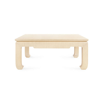 With new proportions and thicker chow feet legs, the Bethany Square Coffee Table from Villa & House is a substantial piece. Finished in a textural, lacquered grasscloth, the Bethany has a chunky appearance that almost reads like plaster. A 42 by 42-inch square, this table is best used with a sectional or corner sofa, as its equal sides and 90-degree angles tuck into tight spaces better than a rectangle. The Bethany coffee tablewhich comes in a white or natural coloris equally welcomed as a neutral moment in a beachy, coastal room like a pool house or as the centerpiece of a casual, brightly colored sunroom.