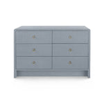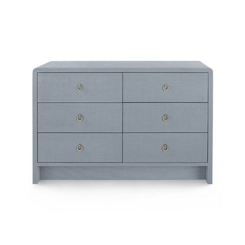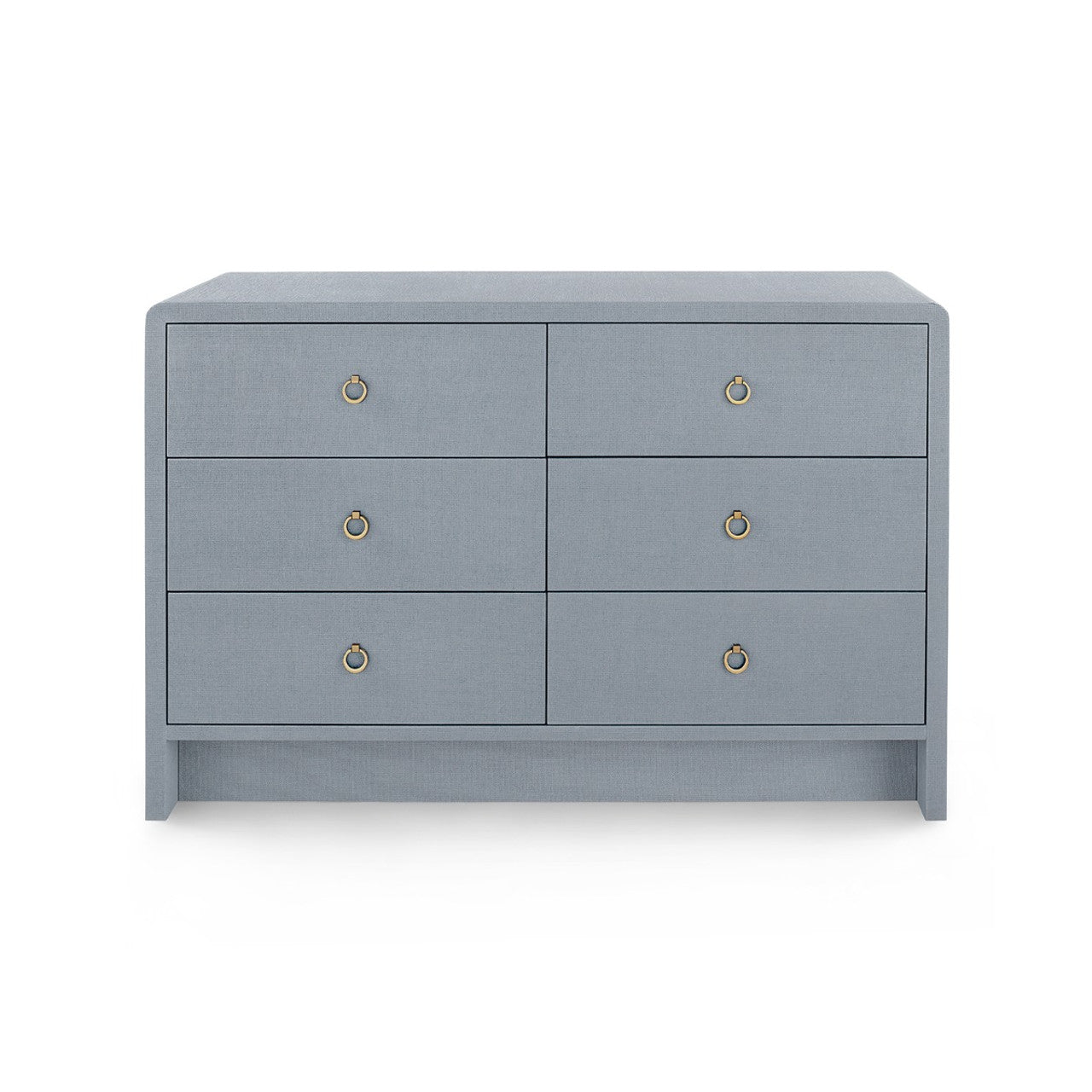 Quiet sophistication is found in the soft curves and classic silhouette of our Bryant Collection. Nevertheless, the Bryant Extra Large 6-Drawer is full of little details which set it apart. Six drawers seamlessly stack together atop an inset base, producing a subtle play on form, while antique brass accents evoke a tasteful sense of luxury. The piece is executed in lacquered linen with a gray, slightly textured finish, making it a rich and uniquely versatile piece fit for almost any decor scheme.53w x 21d x 35h