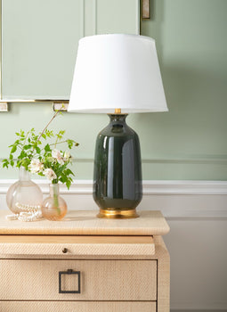 The rich glazed color of our Carolyn lamps evokes the warmth of an Indian-summer day in late autumn while its hand-leafed base and finial impart luxury and glamour. Whether you choose to place the Carolyn in a traditional living room or a modern bedroom, its glowing porcelain sheen and rounded curves make it the stunning centerpiece of the room. Please note that the shade is sold separately. 9.5W x 9.5D x 29.5H