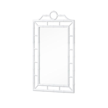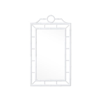 Throughout the Chloe Collection, our craftsmen have taken the ornate elements of Chinoiserie design, made famous by the likes of Thomas Chippendale in the 18th century, and pared them down to showcase their elegant essence through refined simplicity. Solid mahogany has been expertly carved to resemble bamboo, which here makes up the fretwork frame of the Chloe Mirror, forming a decorative, Asian-inspired design. The faux bamboo border, lacquered and finished in clean white, provides a lightness fit for a sunny beach home (or a bedroom, living room or study you wish would feel like one). Pair with our Chloe chairs to create a luxurious Pacific paradise motif, or allow it to stand alone as an eye-catching accent. 31.5W x 1.75D x 56H