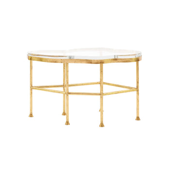 When our designers get their hands on even the most utilitarian of materials, they manage to turn them into something elegant, ethereal, and delicately exquisite. Don't be fooled, though our Cristal Collection is impressively durable. A contemporary interpretation of rustic slab furniture, the Cristal depicts the organic shape of a slice of wood or raw quartz in thick, clear acrylic, shining with subtle facets. The irregular lines of the tabletop are complemented by its sleek and structured iron legs and framing, pulled together in glittering glory with a finish of gold leaf. In minimalist decor schemes, this side table can add a subtle splash of glamour. It can also fit right into a more lavish atmosphere. Pair in sets of two for maximum impact. 29W x 17D x 17H