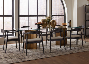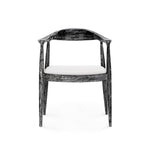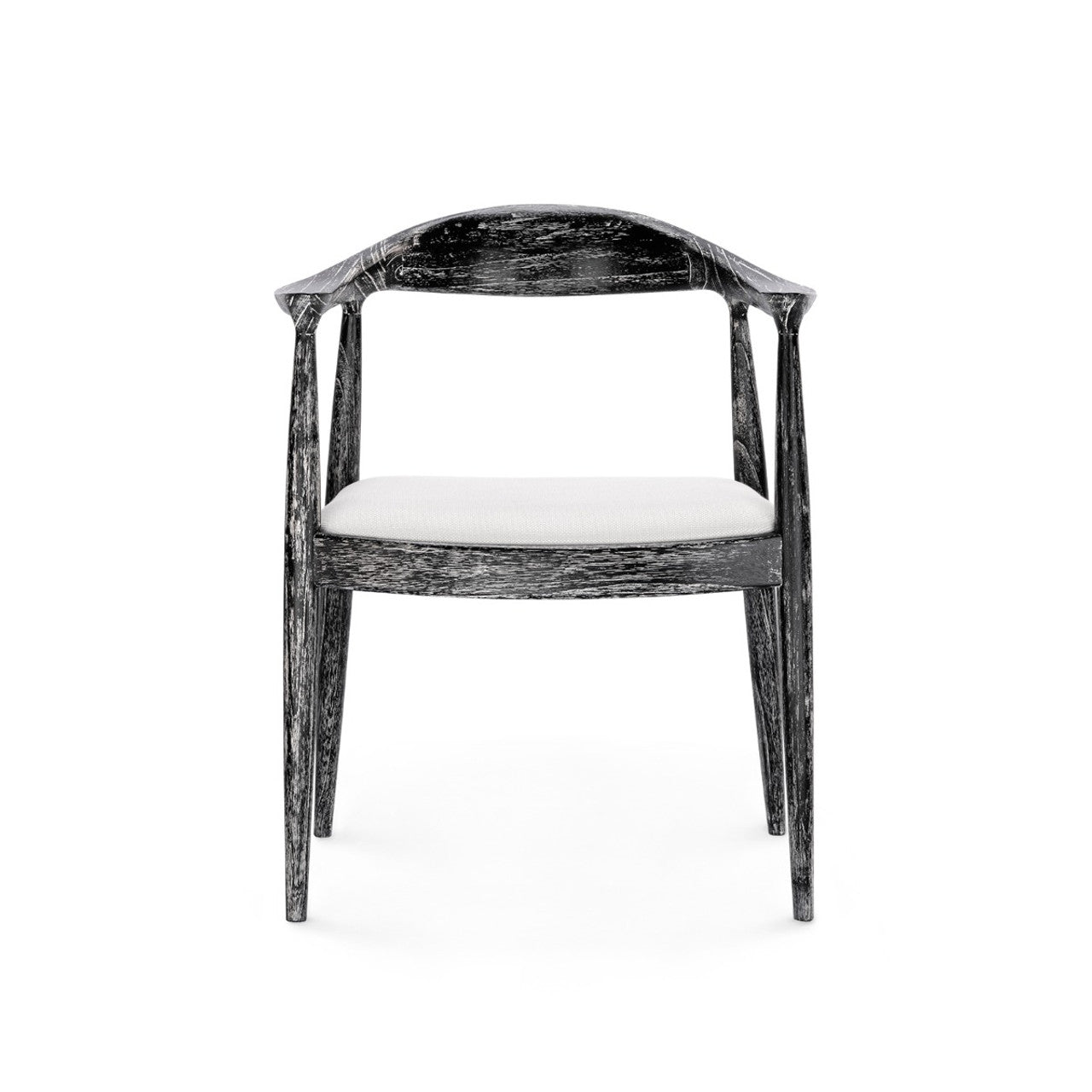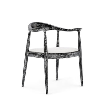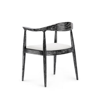 Functionally comfortable, aesthetically cool the Danish Armchair embodies everything we love about mid-century Scandinavian design. Its lacquered mahogany frame is marked by lightness and simplicity, with sleek lines and gentle curves to ensure ultimate comfort. In signature Scandinavian style, the modern form nevertheless remains connected to nature. The Danish proudly displays its organic materials with a black-washed finish that highlights the natural texture and grain of the wood. A linen drop-in cushion completes the chair, which can be styled as a statement-making standalone armchair, an accent piece floated in a living room, or together as a set around a dining table. 24.5W x 21.5D x 30.5H