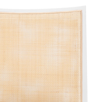 Cane-backed chairs have proven to be a timeless addition, and our Ernest Side Chair embodies everything we love about them. A classic silhouette, made of lacquered mahogany with a modern white finish, is complemented by the meticulously hand woven cane back, which adds a dash of organic chic. With decorative wood-carved detailing at its seat and a comfortable linen drop-in cushion, the Ernest is a relaxed yet effortlessly elegant pick as part of a dining set. It would work particularly well within a modern farmhouse kitchen or country dining room. 19.75W x 20.5D x 34.75H